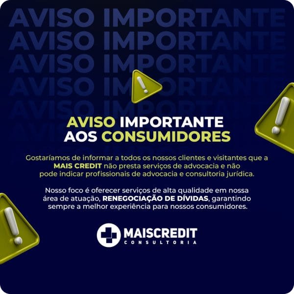 Não aceitamos depósitos de clientes em nome de pessoas físicas, apenas no CNPJ da empresa que é: 13.413.808/0001-42 ou pelo e-mail pix@maiscredit.com.br. Os veículos de comunicação são corporativos e oficiais.
